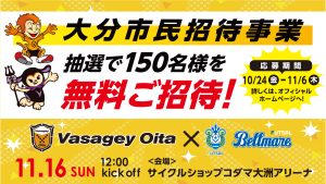 【告知】11/16(日)『大分市民招待事業』計150名様をホームゲームにご招待!