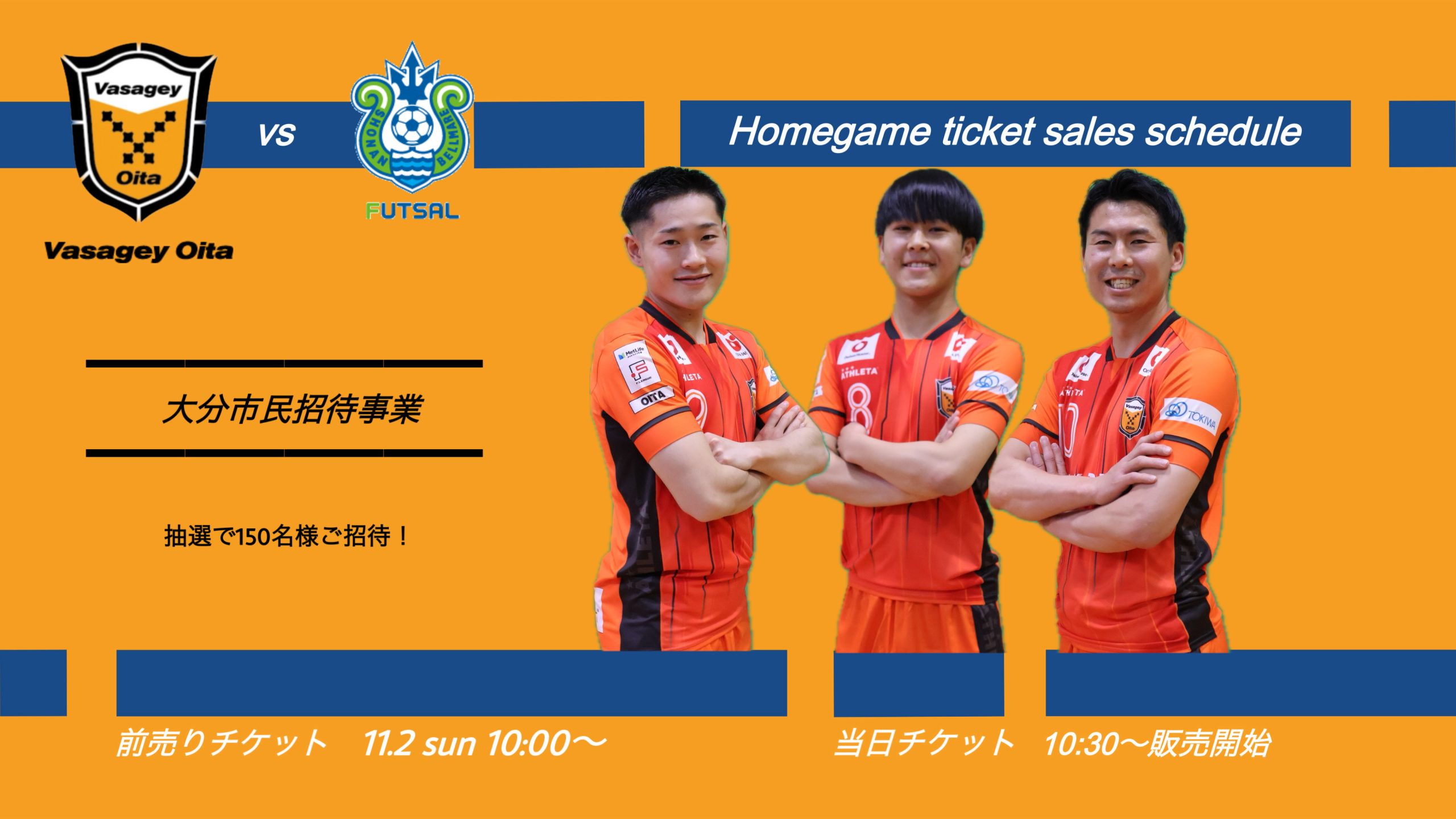 11/16(日)バサジィ大分 vs 湘南ベルマーレ戦のホームゲームチケットが販売開始となっております!