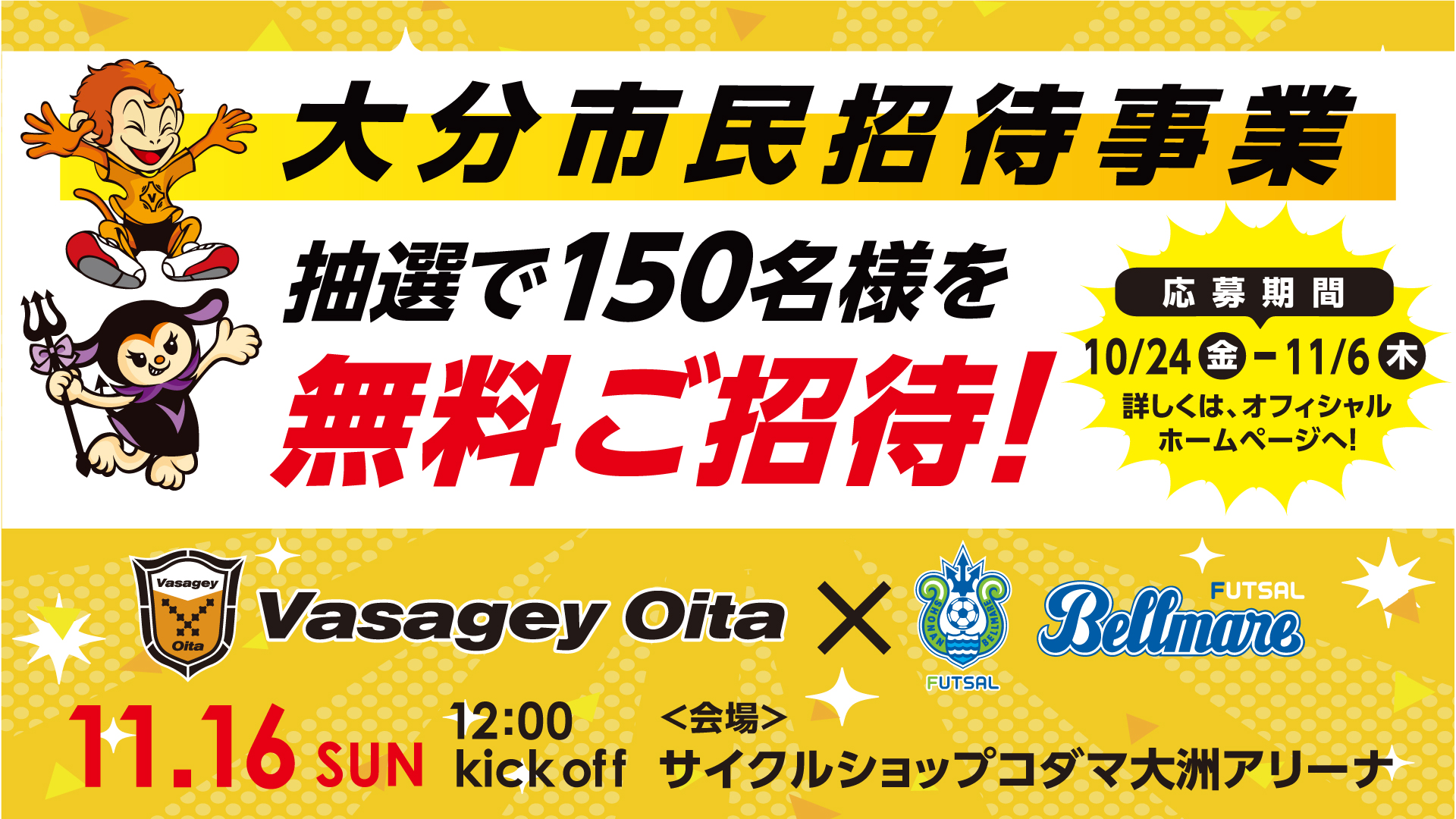 【告知】11/16(日)『大分市民招待事業』計150名様をホームゲームにご招待!